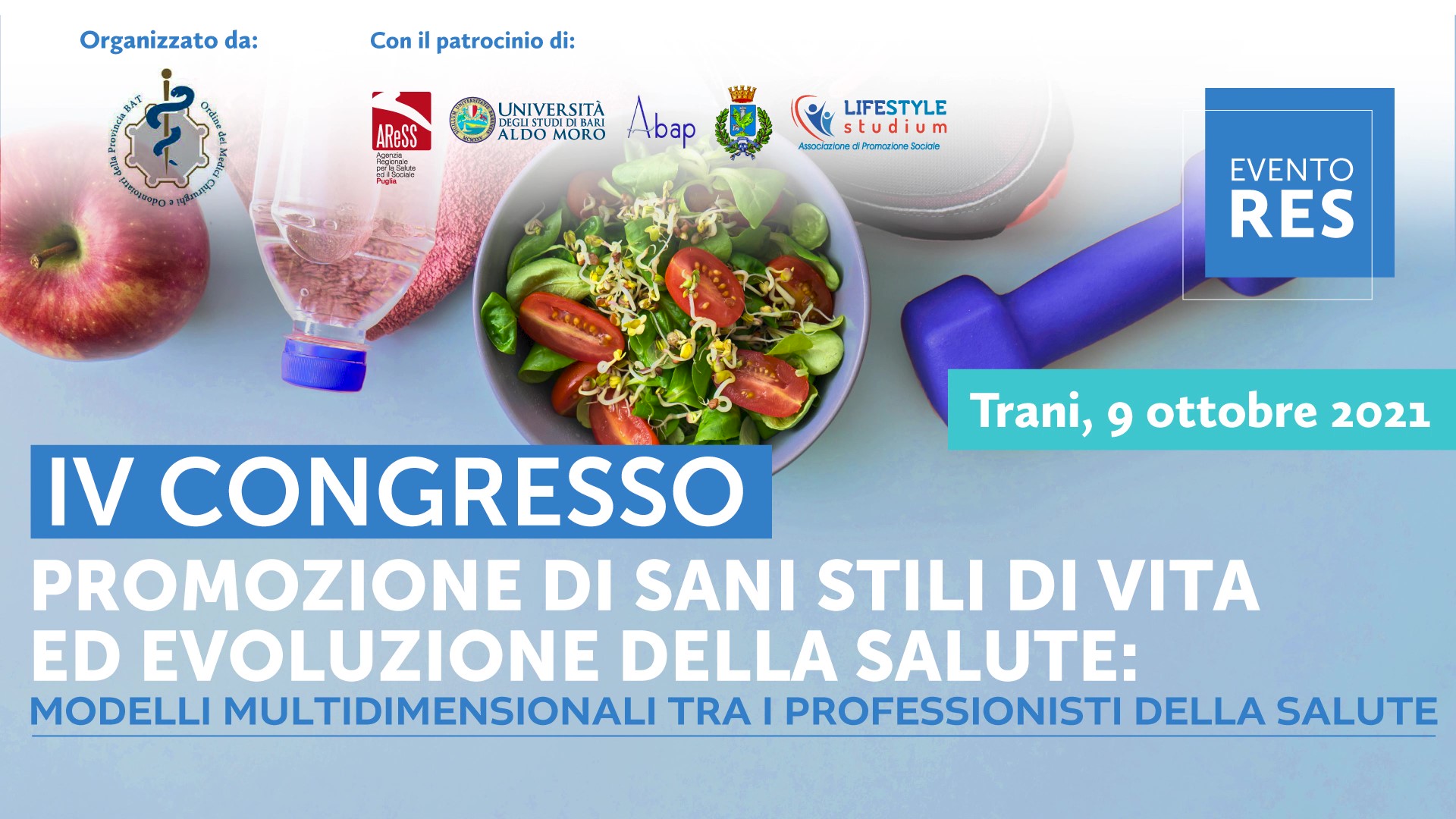 “Promozione di Sani Stili di Vita ed evoluzione della Salute: modelli multidimensionali tra professionisti della Salute”. Quarta edizione Convegno OMCeO BAT. Sabato, 9 ottobre. Palazzo San Giorgio, Trani
