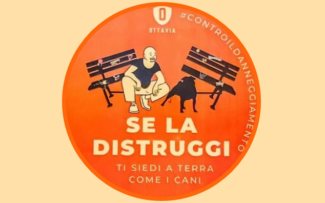 Singolare ma espressiva iniziativa a Foggia, dove su alcune panchine è stato legato un cartello su cui si legge: se la distruggi, poi ti siedi per terra come i cani.